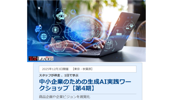 12/3日経トップリーダー「中小企業のための生成AI実践ワークショップ」に登壇します